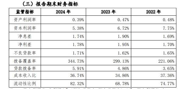资产质量方面,2024年末该行不良贷款率1.71%,较上年末上升0.09个百分点;拨备覆盖率344.73%,较上年末上升45.60个百分点。