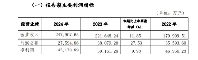业绩方面,2024年该行实现营业净收入24.79亿元,同比增加11.85%;实现利润总额2.76亿元,同比下降27.53%;净利润4.52亿元,同比降幅9.93%。
